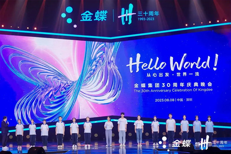今晚的主题,也是金蝶30周年的主题:Hello World!从心出发,世界一流。徐少春表示,“Hello World,是表示我们要以全新的心态拥抱世界,开启我们的全球化战略,履行我们对世界新的承诺!从今天开始,我们决心拓展海外市场,迈向世界一流!我们的目标是,到2026年突破东南亚市场,力争亚太第一;到2030年,我们力争全球第五。”