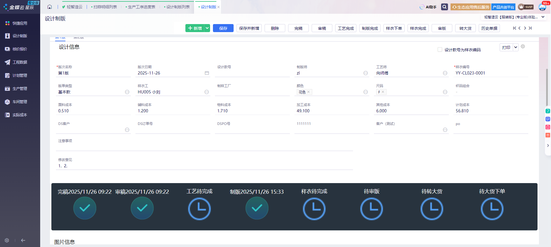 从设计图纸、样衣确认到大货生产,每一步都能在系统里留痕,权责清晰。你随时能查看进度,避免流程混乱导致的工期延误,还能同步管控质量,让每一批大货都符合要求。